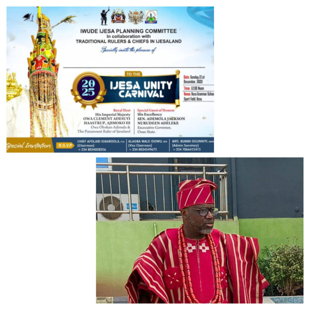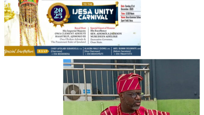 This is why I, Prince Sunday Adewusi, the Otun Aare Egbe Bobakeye Okunrin Adimula, proudly call on every Ijesa—both at home and in the diaspora—to rise with honour, unity, and pride as we prepare for the grand Ijesa Unity Carnival, part of the events marking Iwude-Ijesa celebration.